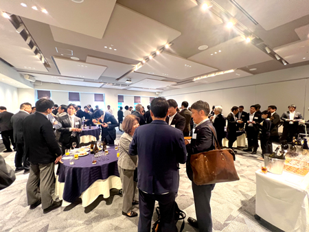 研究会後の交流会の様子:名刺交換から新たなビジネスマッチングが生まれる環境をご提供しています。