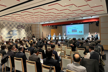 宝石専門チャンネル「ジュエリー☆GSTV」の株式会社GSTV 代表取締役の今橋氏、甲府商会議所の越石専務理事、鈴木課長、甲府市産業部の角田課長より、日本のジュエリーの約3割が作られている山梨県のジュエリーの魅力や、甲府ジュエリーを核とした地域振興の取組みについてお話をいただきました。
